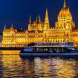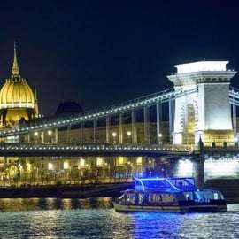 Maak een magische avondcruise over de Donau aan boord van een catamaran door Boedapest. Geniet van live pianomuziek en een heerlijk 4-gangen diner terwijl je langs de iconische bezienswaardigheden van de stad vaart.