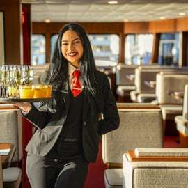 Schitterende foto's maken is hier een must! En terwijl je de bezienswaardigheden bewondert, kun je in de stijlvolle bar aan boord genieten van heerlijke drankjes – met vriendelijke bediening aan tafel.