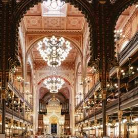 Je deskundige gids onthult de geheimen van deze bijzondere plek, van de imposante Dohány Straat Synagoge – de grootste in Europa – tot de serene Rumbach Straat Synagoge. Bewonder de architectuur, voel de geschiedenis en ontdek de betekenis van deze iconische gebouwen.